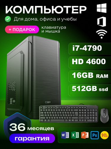 Системный блок Компьютер ПК (Intel Core i7-2600, RAM 16 ГБ, SSD 960 ГБ, Intel HD Graphics, Windows 10 Pro), черный, черный матовый