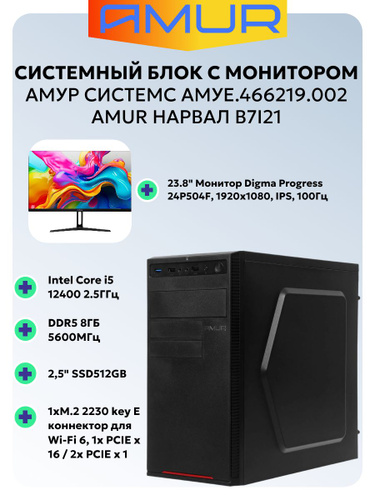 Amur Системный блок с монитором 23.8" Progress 24P504F (Intel Core i5-12400, RAM 8 ГБ, SSD 512 ГБ, Intel UHD Graphics 730, Без ОС), АМУЕ.466219.002ТУ, черный