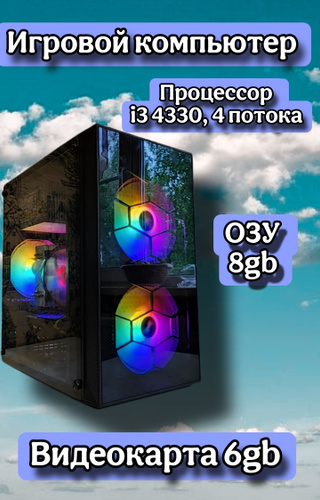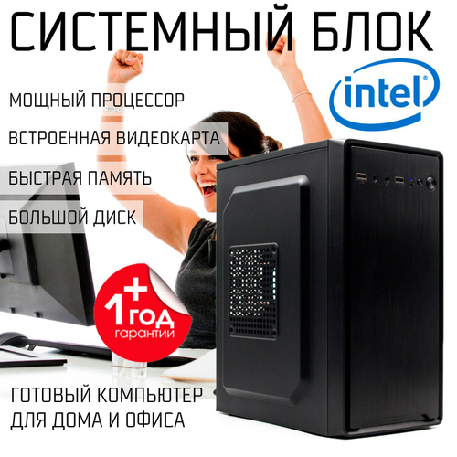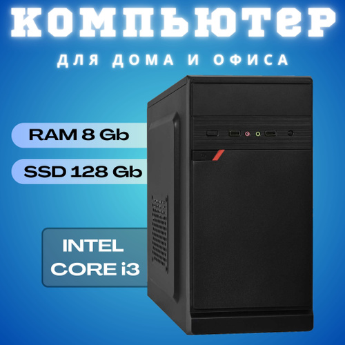Системный блок (Intel Core i3-6100, RAM 8 ГБ, HDD 500 ГБ, Intel UHD Graphics, ), черный