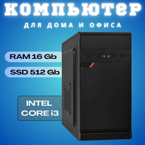 Системный блок (Intel Core i3-2100, RAM 16 ГБ, SSD 512 ГБ, Intel HD Graphics, Windows 10 Pro), черный