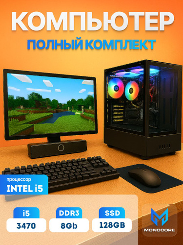 MONOCORE 21.5" Комплект с системным блоком (Intel Core i5-3470, RAM 8 ГБ, SSD 128 ГБ, Intel HD Graphics 2500, Windows 10 Pro), черный