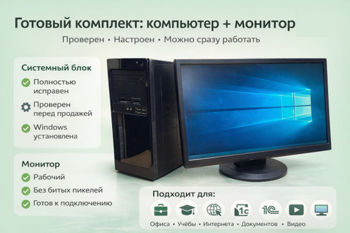 Системный блок Комплект компактный системный блок i5-2500/8GB/HDD1000GB + Монитор 22 дюйма (Intel Core i5-2500, RAM 8 ГБ, HDD 1000 ГБ, Intel HD Graphics, Windows 10 Pro)