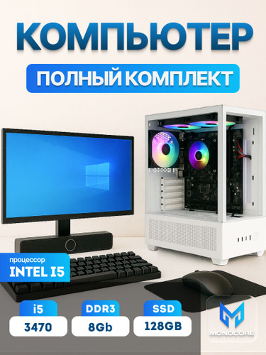 MONOCORE 21.5" Комплект с системным блоком (Intel Core i5-3470, RAM 8 ГБ, SSD 128 ГБ, Intel HD Graphics 2500, Windows 10 Pro), белый