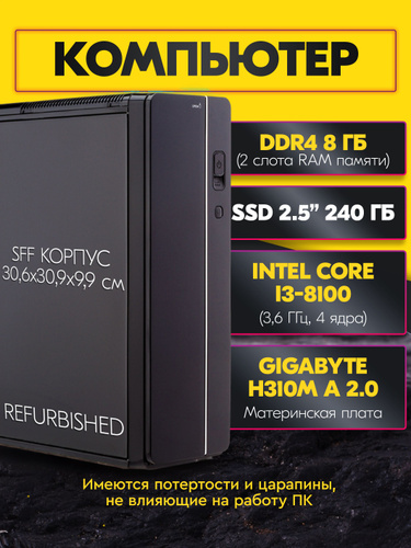Системный блок (Intel Core i3-8100, RAM 8 ГБ, SSD 240 ГБ, Intel HD Graphics 630, Windows 10 Pro), черный, черный матовый