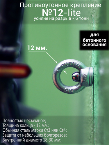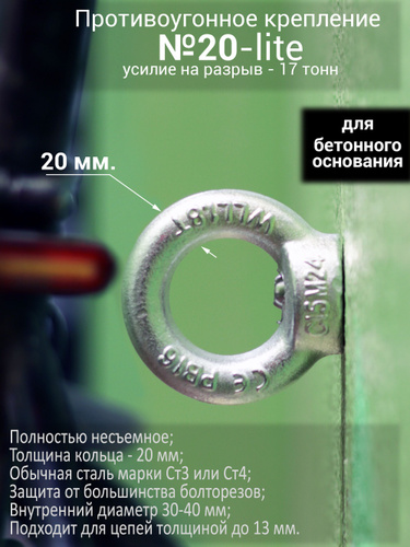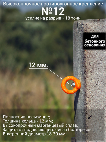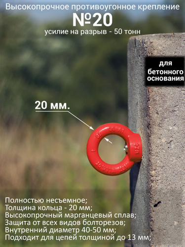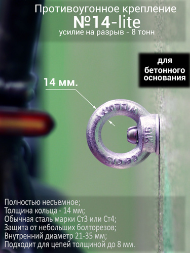 Крепление от угона велосипеда №20. Высокопрочная закаленная сталь. Марганцевый сплав. Только для бетонного (монолитного) основания. Для каленой цепи с замком толщиной до 13 мм.