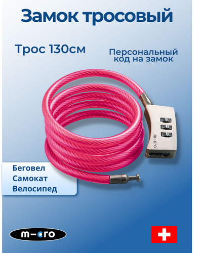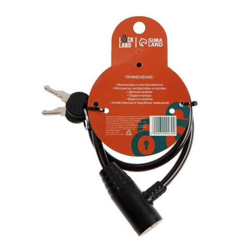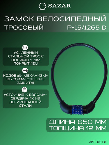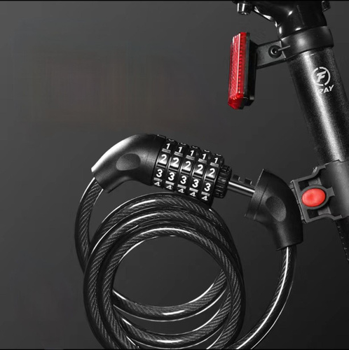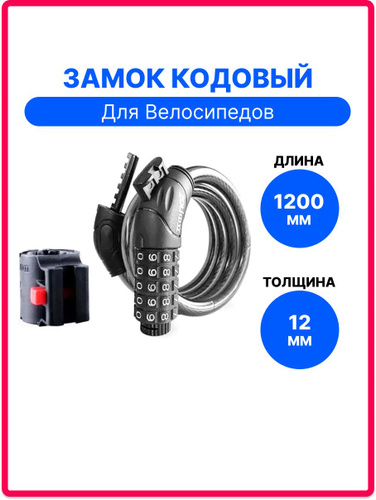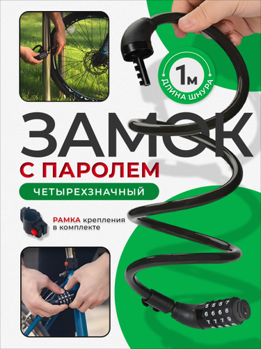 Замок навесной велосипедный кодовый, 10х650 мм, цвет черный