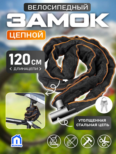 Замок для велосипеда 1200mm, цепь, тканевая оболочка для велосипеда с ключом