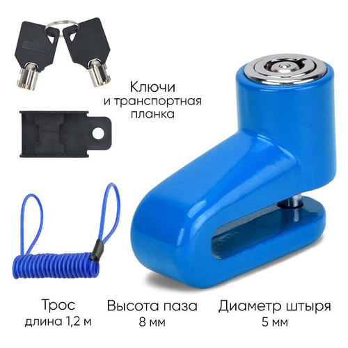 Замок для велосипеда/самоката тросовый/на диск СИНИЙ