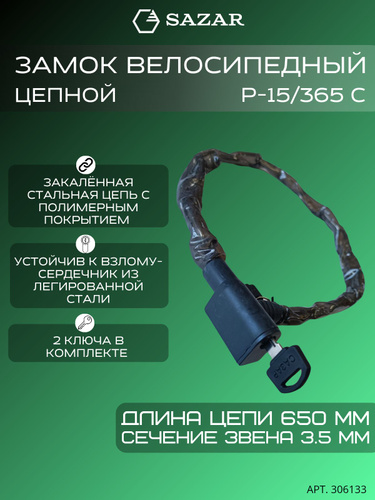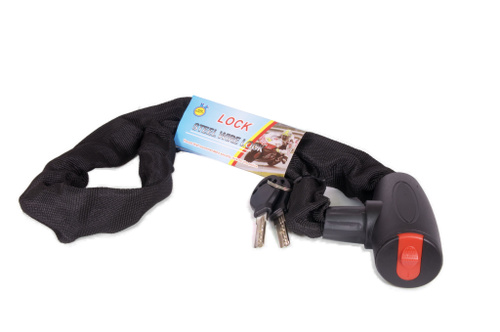 Замок велосипедный противоугонный Lock ZH-003BK, 6х1000 мм, тканевая оплетка, цепь, 2 ключа, черный