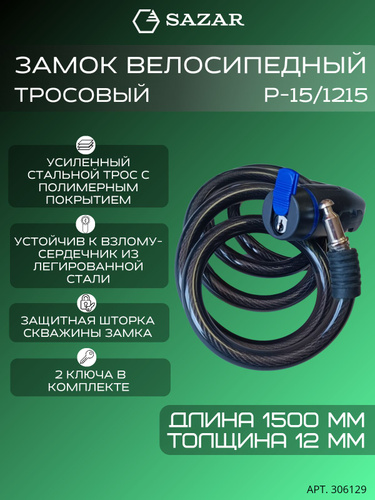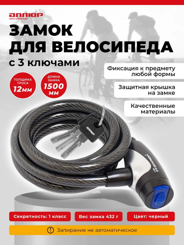 Замок велосипедный противоугонный тросовый АЛЛЮР ВС-Т 12 1500 мм
