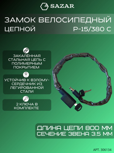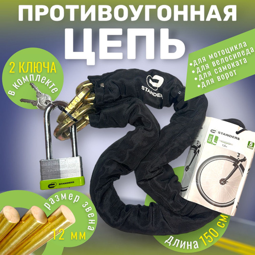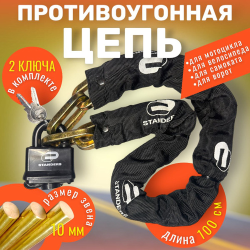 Противоугонная цепь С ЗАМКОМ МОЩНЫМ для велосипеда или мотоцикла Standers, 10 мм 100 см, сталь с текстильным покрытием