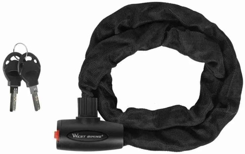 Замок велосипедный противоугонный West Biking GK101.715, 6x1200 мм, 2 ключа, тканевая оплетка, цепь, черный