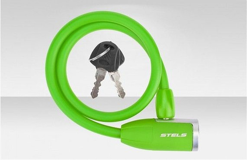 Замок велосипедный STELS 84356, 10x650 мм, стальной, на ключ, зеленый, арт. 540051