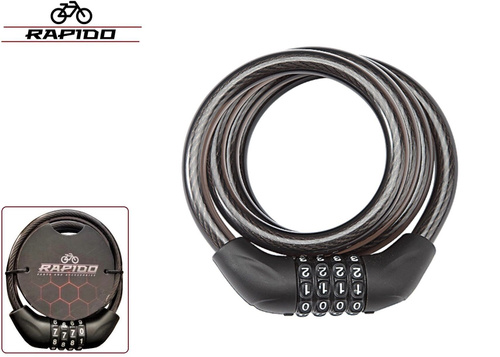 Замок велосипедный противоугонный Rapido, 10x1800 мм, кодовый, черный