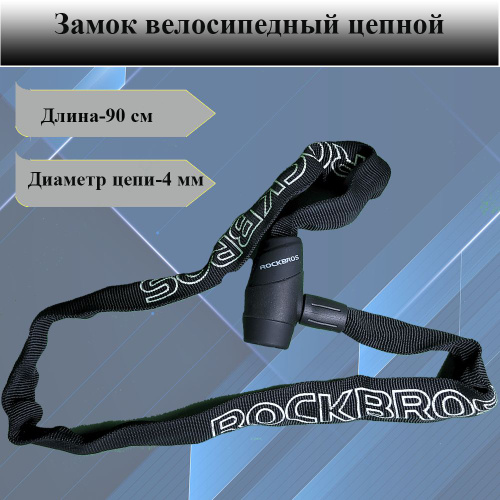Замок Rockbros для велосипеда противоугонный цепной 90 см с 2 ключами черный