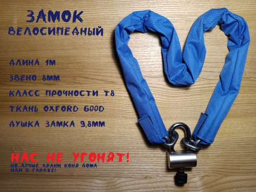Замок для велосипеда противоугонный цепной 1м, толщина звена 8мм, синий