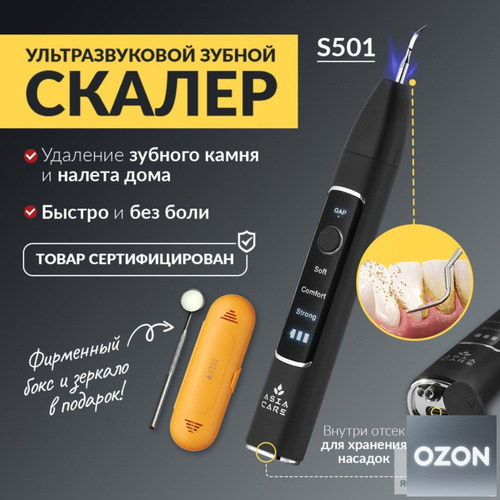 Скалер ультразвуковой электрический для удаления зубного камня AsiaCare S501, черный / Ирригатор для полости рта / Отбеливание зубов