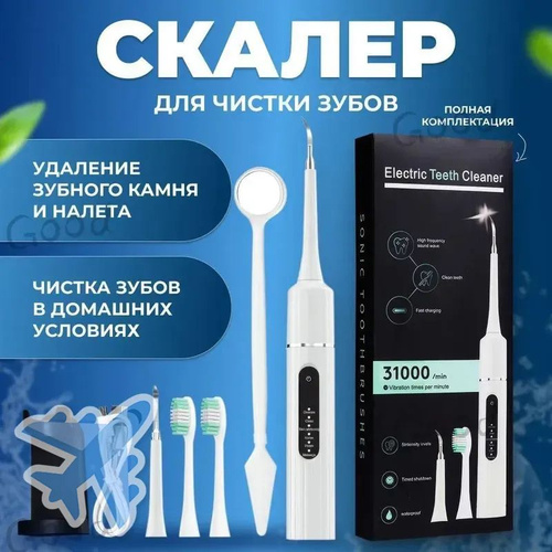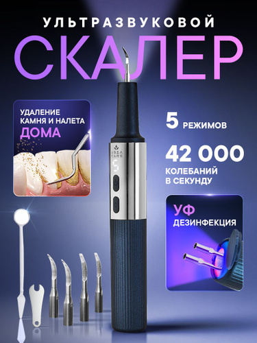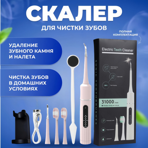 Ультразвуковой скалер для удаления зубного камня. Электрическая зубная щетка-скалер от налета и кариеса. Набор 6 в 1