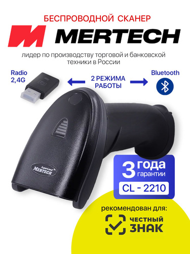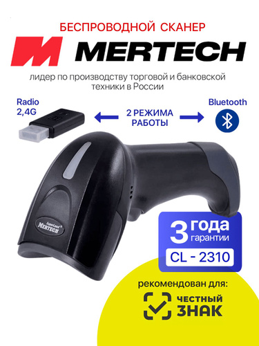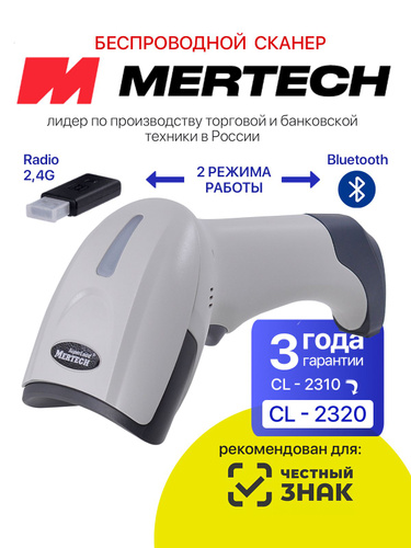 Беспроводной сканер штрих кодов 2D, Data Matrix MERTECH CL-2310 для Честный знак, ПВЗ, ЕГАИС, 1С, Онлайн кассы