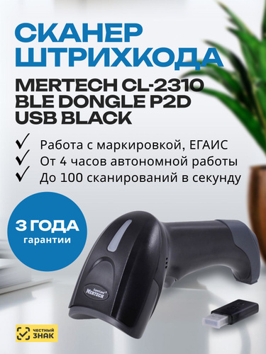 Сканер Mertech CL-2310 BLE Dongle P2D (2D,USB,Черный)