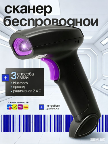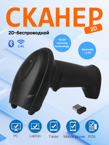 Сканер штрихкодов 2d беспроводной (Блютус + 2.4 + Кабель)