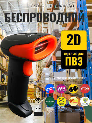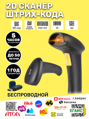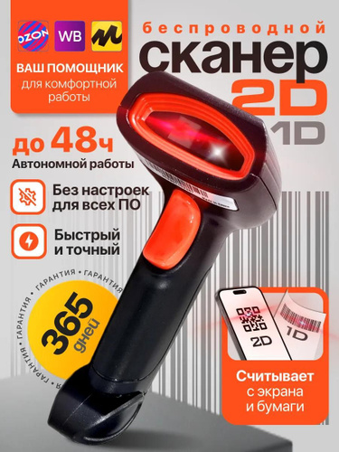 Беспроводной 2D сканер штрихкода для маркировки, ЕГАИС, Честный знак, Атол, Меркурий, идеален для ПВЗ