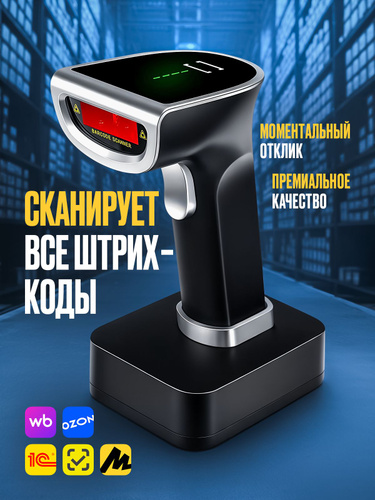 Сканер штрих-кодов 1D беспроводной/проводной