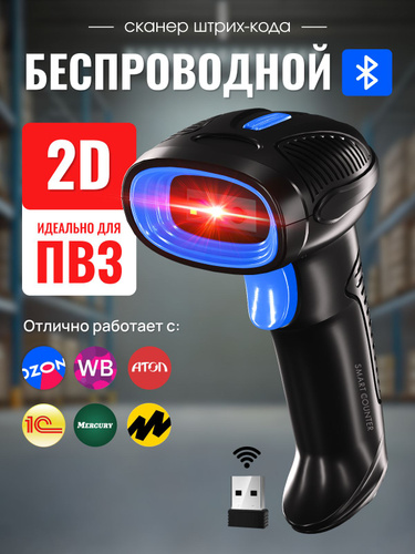 Беспроводной 2D сканер штрихкода Smart Counter для маркировки, ЕГАИС, Честный знак, Атол, Меркурий, штрих идеален для ПВЗ