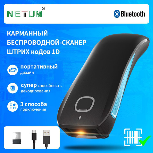 Беспроводной одномерный лазерный сканер штрих-кода NETUM, NT-1698W