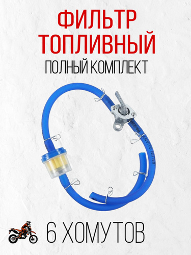 Топливный (бензиновый) фильтр с краном (полный комплект бензиновым шлангом и хомутами) для мотоцикла мопеда питбайка скутера