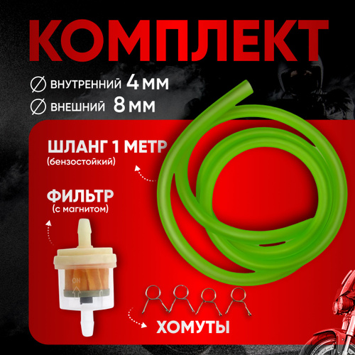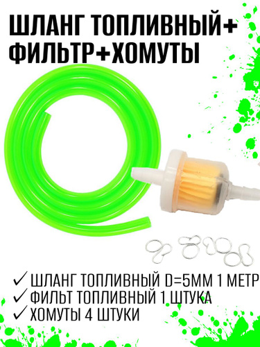 Шланг топливный 1 метр + фильтр + хомуты зеленый мотоцикл эндуро питбайк скутер квадроцикл