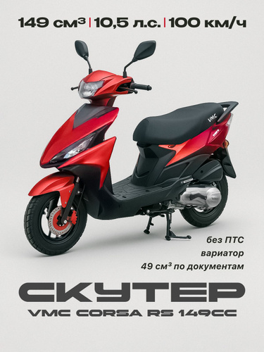 Скутер VMC CORSA RS 149сс (без ПТС, по документам 49сс,10.5 л.с, 100км/ч, вариатор, тормоз дисковой передний, схож с yamaha as125 цвет черно-красный) / скутер для взрослых бензиновый