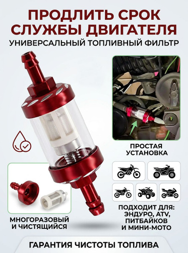 Фильтр топливный, универсальный, под бензошланг, для мопеда, мотоцикла, скутера, генератора, лодочного мотора