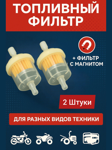 Фильтр топливный, универсальный, под бензошланг, для мопеда, мотоцикла, скутера, генератора, лодочного мотора - 2 шт.