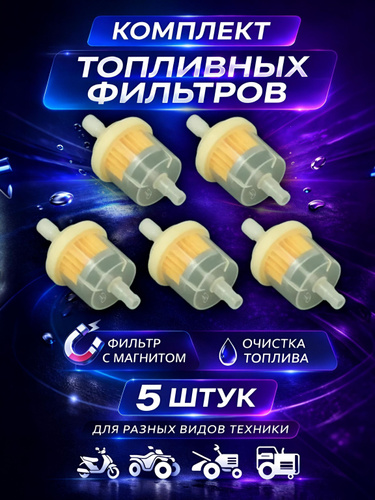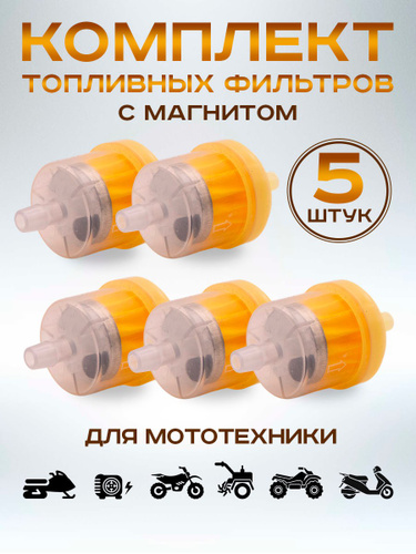 Фильтр топливный, универсальный, под бензошланг, для мопеда, мотоцикла, скутера, генератора, лодочного мотора - 5 шт.