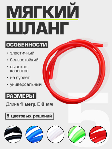 Шланг топливный бензиновый 5-8 мм красный (мягкий)