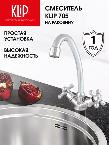 Смеситель для кухни, двуручный, хромированный, с крестообразным маховиком, без подводки Klip 705