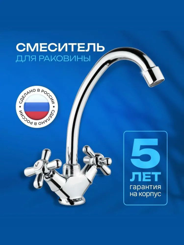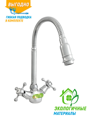 Смеситель для кухни латунный, с двумя вентилями, для мойки с высоким изливом Две Воды