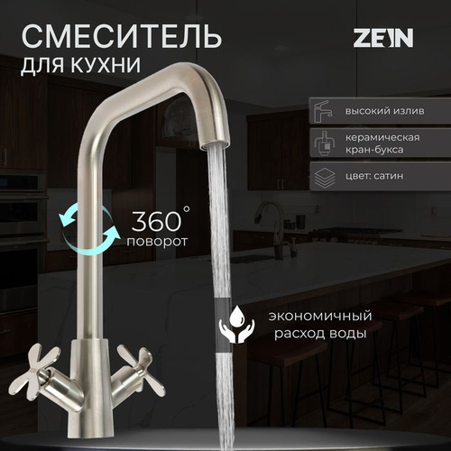 Смеситель для кухни двухвентильный, сатин, сталь
