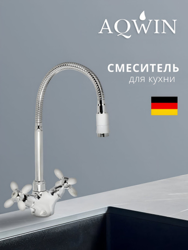 Aqwin Смеситель для кухни гибкий излив, с кран-буксой, хром