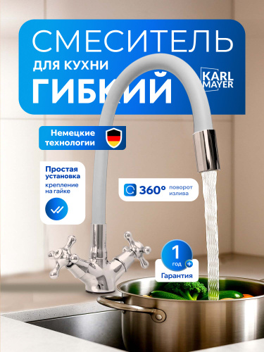 Смеситель для кухни с гибким изливом KARL MAYER на гайке 1/2 м/к белый