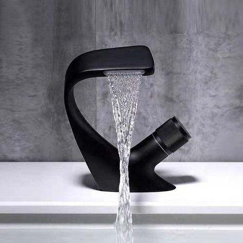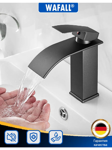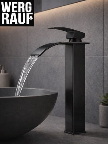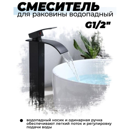 Смеситель на столешницу , смеситель для раковины чаши, высокий Wergrauf. Излив водопад , чёрный матовый