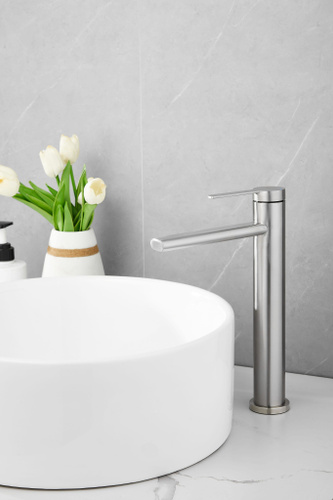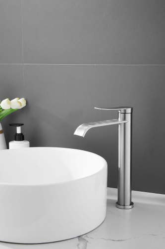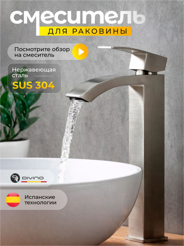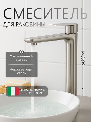 Смеситель для накладной раковины высокий в ванную сатин DIVINO LUX / Код 16300