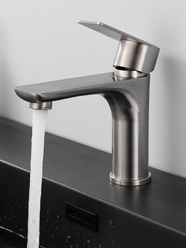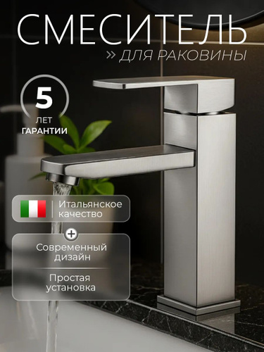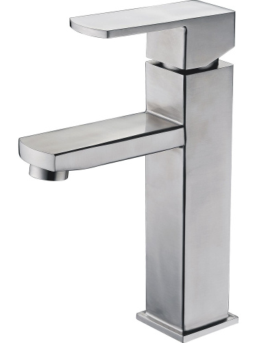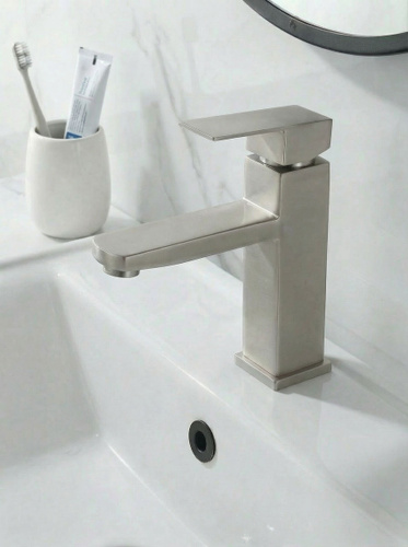 Смеситель для раковины, матовый сатин, нержавеющая сталь, квадратный корпус