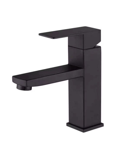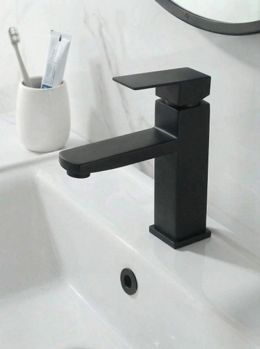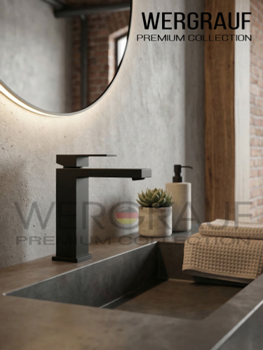 Смеситель для раковины монолитный квадрат Wergrauf FB-01B. Черный матовый