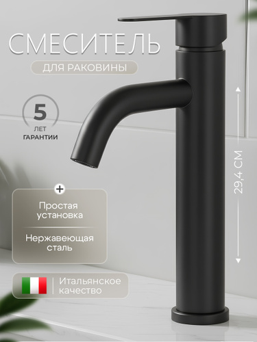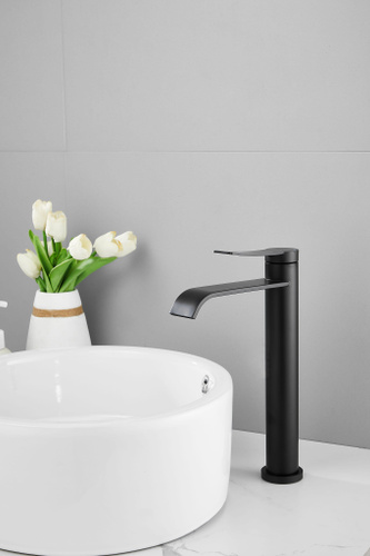 Смеситель для раковины в ванную / смеситель для раковины умывальника / смеситель высокий для накладной раковины / черное