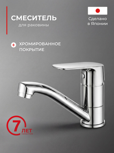 Смеситель для раковины однорычажный, высокий, монолитный, хромированный. Подходит для накладной раковины
