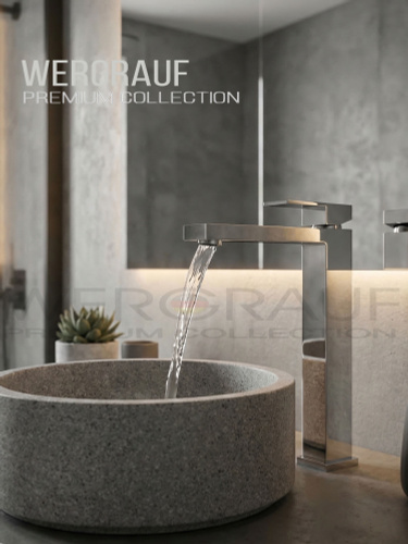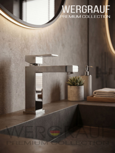 Смеситель на столешницу , смеситель для раковины чаши, высокий Wergrauf. Квадратная форма ,хром зеркальный