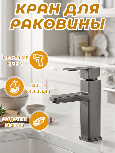 Cмеситель для раковины в ванной / однорычажный / квадратный ,серый