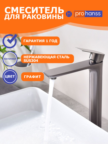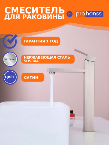 Смеситель для раковины в ванную, Prohanss P30.15.05, высокий, сатин
